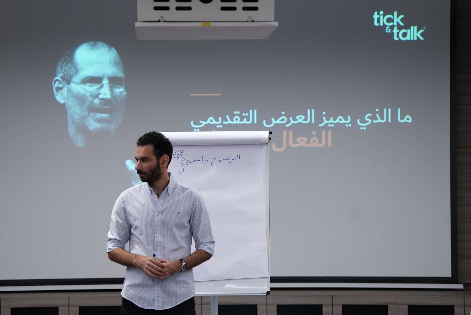 في جلسة تدريبية واحدة مدتها 90 دقيقة ستحصل على تدريب عملي مباشر يساعدك على تحسين مهاراتك الأساسية في الإلقاء لغة الجسد والتأثير على الجمهور.